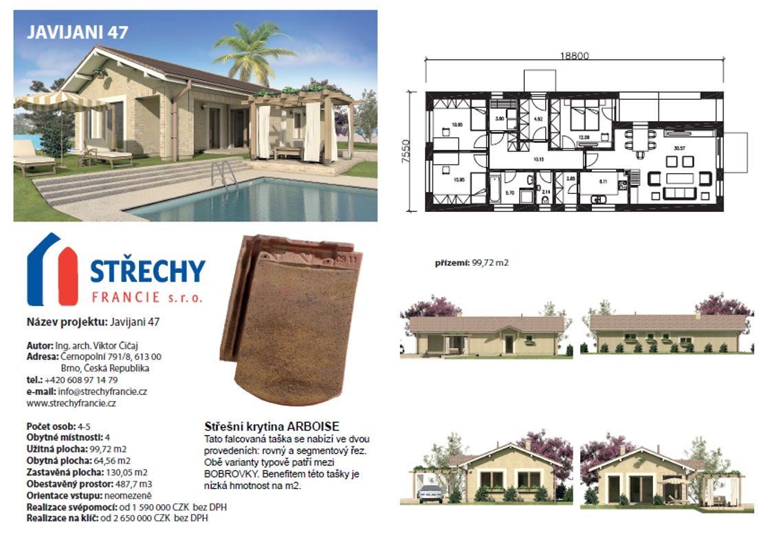 Připravili jsme pro Vás novou sekci DOMY PROVENCE, kde naleznete typové domy v kouzelném stylu Provence. Hlavní úlohu těchto domů hraje vzhled, který dokonale dotváří právě střecha Edilians. V této sekci naleznete dostatek informací, jako jsou vizualizace, dispozice jednotlivých projektů, ale také základní informace o parametrech domů a cenách. Typové domy je možné stylově přizpůsobit Vašim přáním tak, aby dokonale splňovaly Vaše představy. Rádi Vám pomůžeme při plnění Vašich snů.
